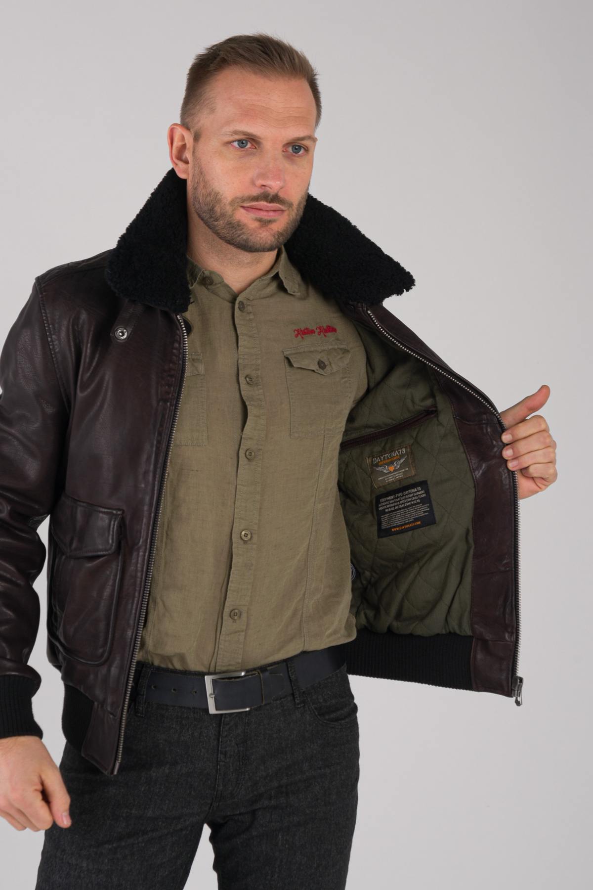 The Blerio Fur Cow Veg Brown from the Daytona brand is a bomber jacket made with high quality leather. cowhide leather base.