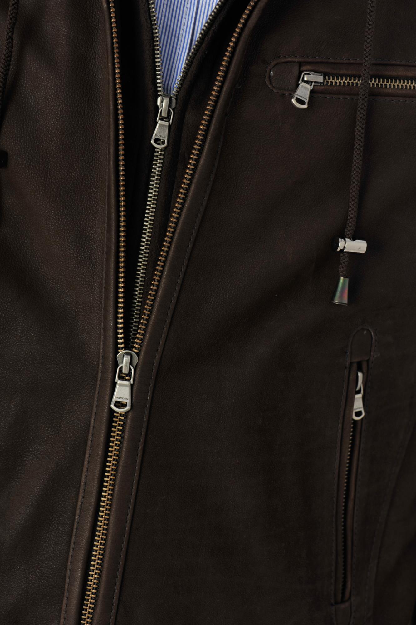Cowhide leather jacket Biker collar Zipper closure zip 2 zipped side pockets 3 interior pockets including 1 zipped Paring with removable hood 100% polyester lining