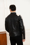 Full of character, this This jacket is a real gem that will highlight the beauty of your look. with a masculine and virile silhouette. Its sheep leather is refined; and work with rigor, down to the smallest details. The surface allows you to appreciate the full grain leather and its distinguished texture. We love the white colored elements which provide contrast. The biker collar closes with a snap button and descends to a long central zip. The 4 exterior pockets are zipped and contrasting, like the central closure. Contrasting bands run along the sleeves. Impossible to resist the topstitching sewn on the shoulders or the vintage motorcycle-style embroidered patches on the arms and sides. Chest. We also love the beige colored cotton lining which includes 3 interior pockets. Looking for a unique piece that revisits the greatest classics, the Lancia is made for you. Inspired Vintage car-motorcycle races will bring mechanics to life. your wardrobe, for outings that will attract all eyes.