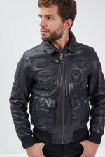 Fall for this MYTHIC + FUR SHEEP PETROL BLACK/BLACK men's jacket from the DAYTONA label. A bomber jacket revisited and manufactured in washed lambskin. cut in a regular cut.