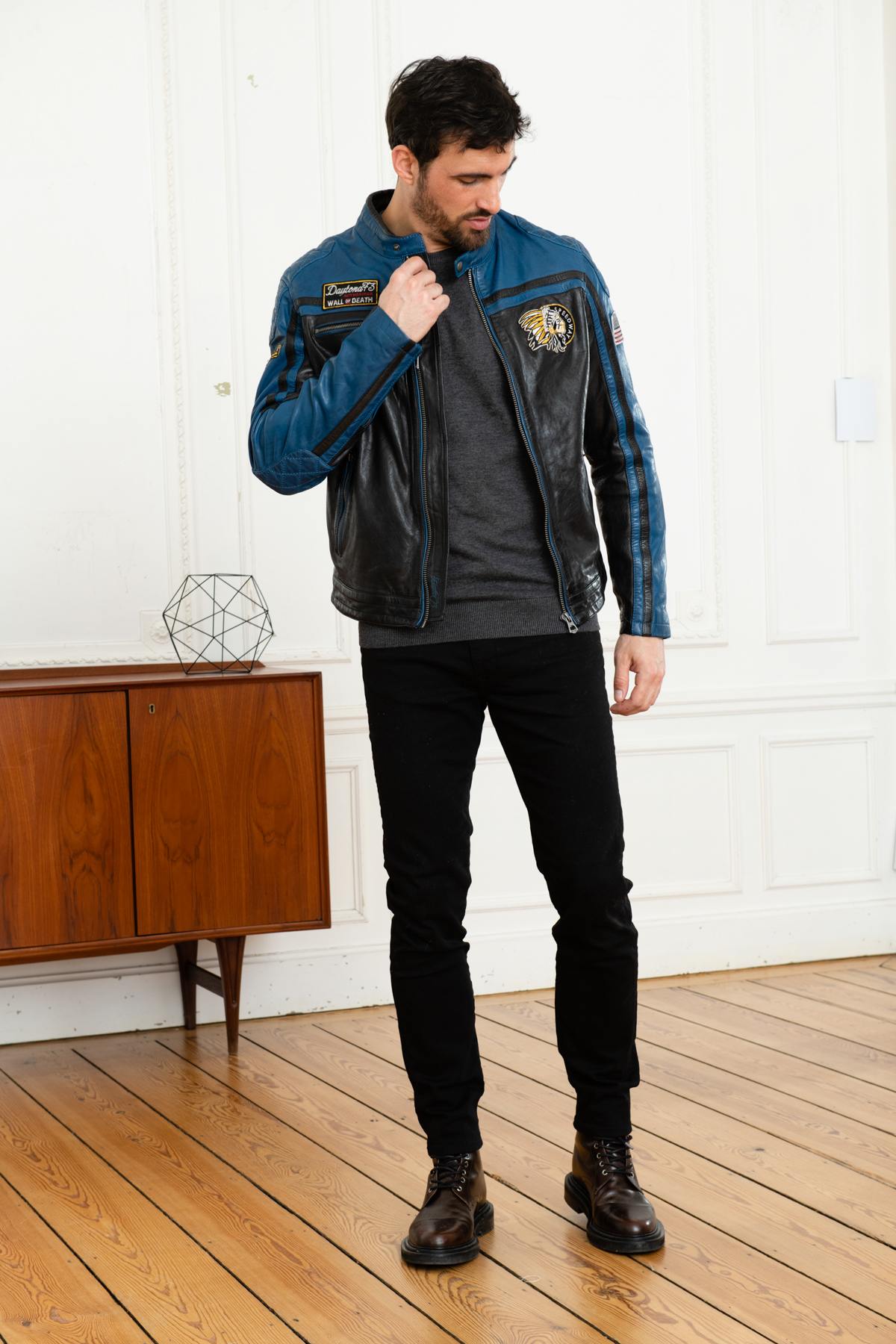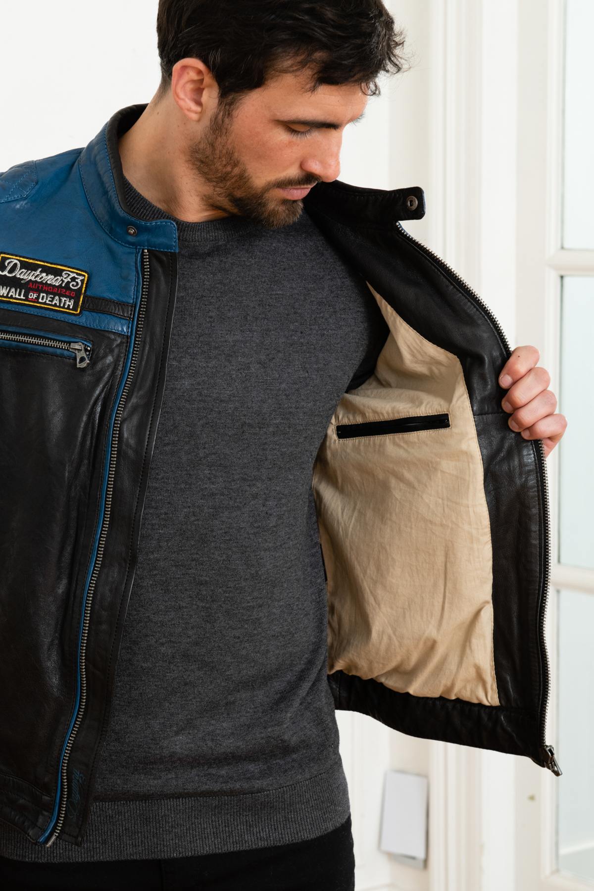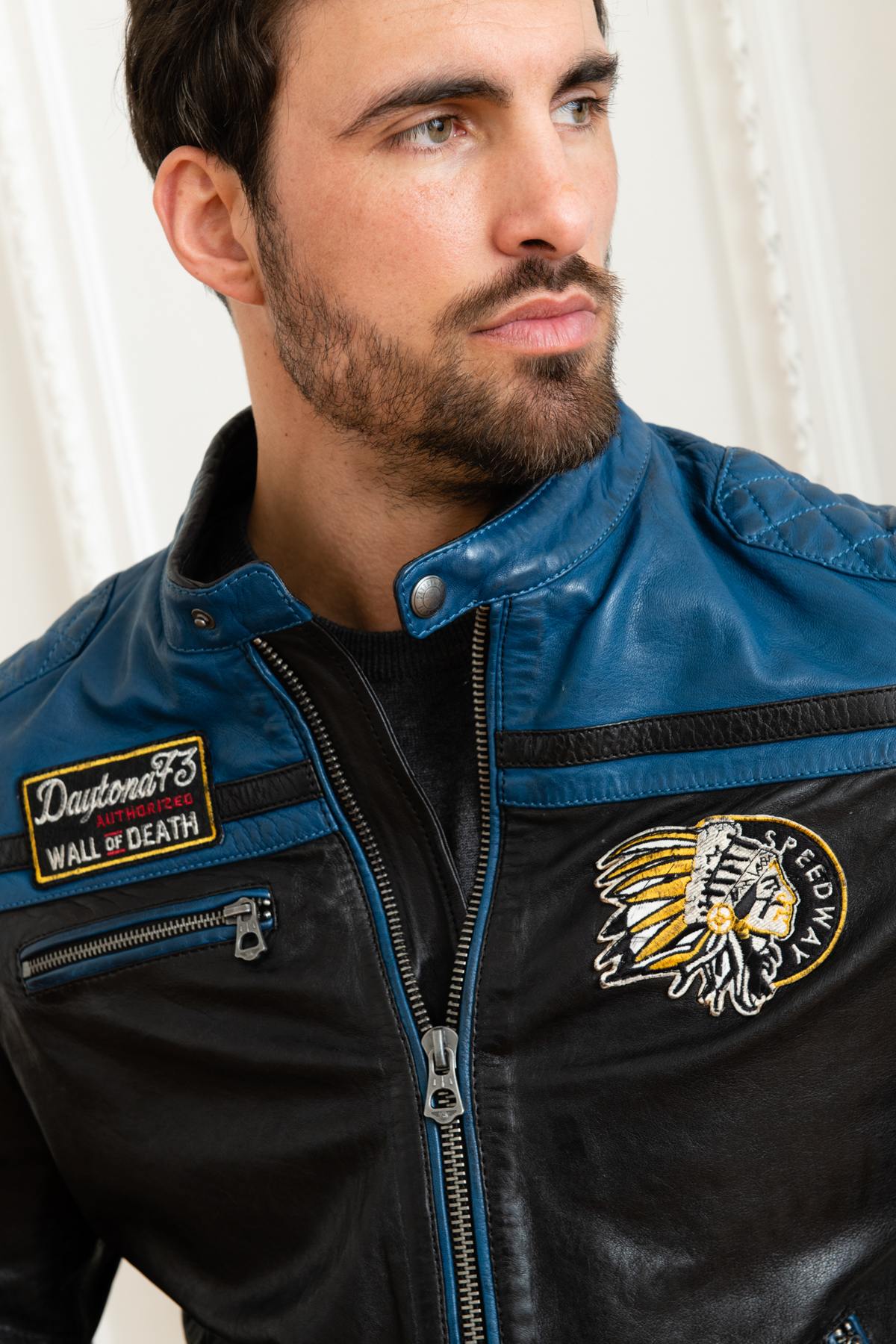 Enjoy the cut, the quality and the comfort of the Perkins Black Blue, the men's jacket that is all the rage on the men's side. of Daytona this season. Bikers...