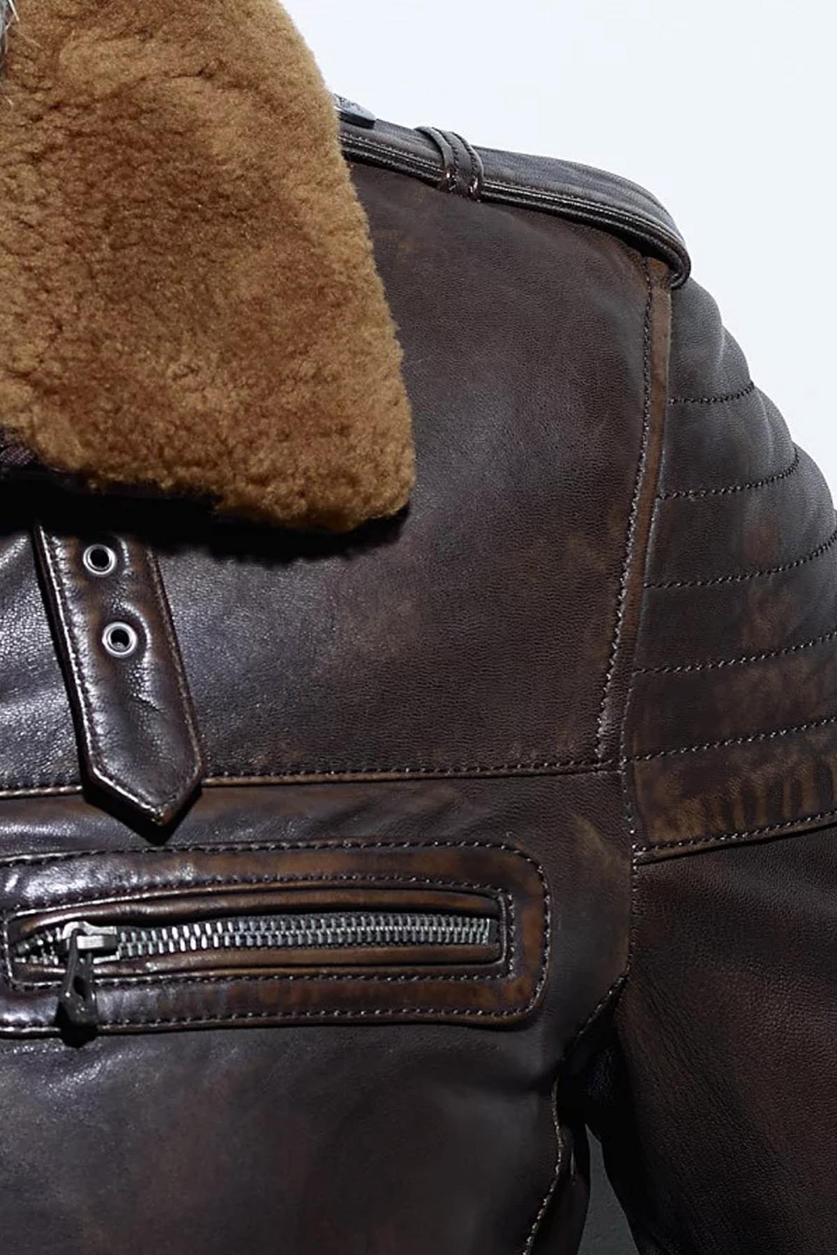 Vintage leather jacket with removable sheepskin collar - Image n°3