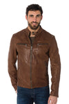 Bison-colored grained cowhide leather jacket - Image n°1