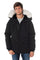 Fixed, fur-lined hood decorated with white fox fur, detachable by zip and Velcro.