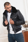 Sheep fur collar detachable with buttons, which once removed can be attached to the lining. reveals a leather shirt collar.
