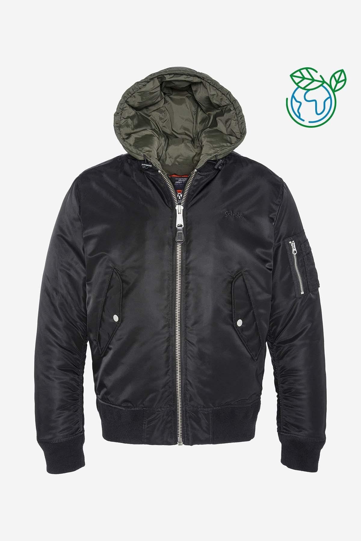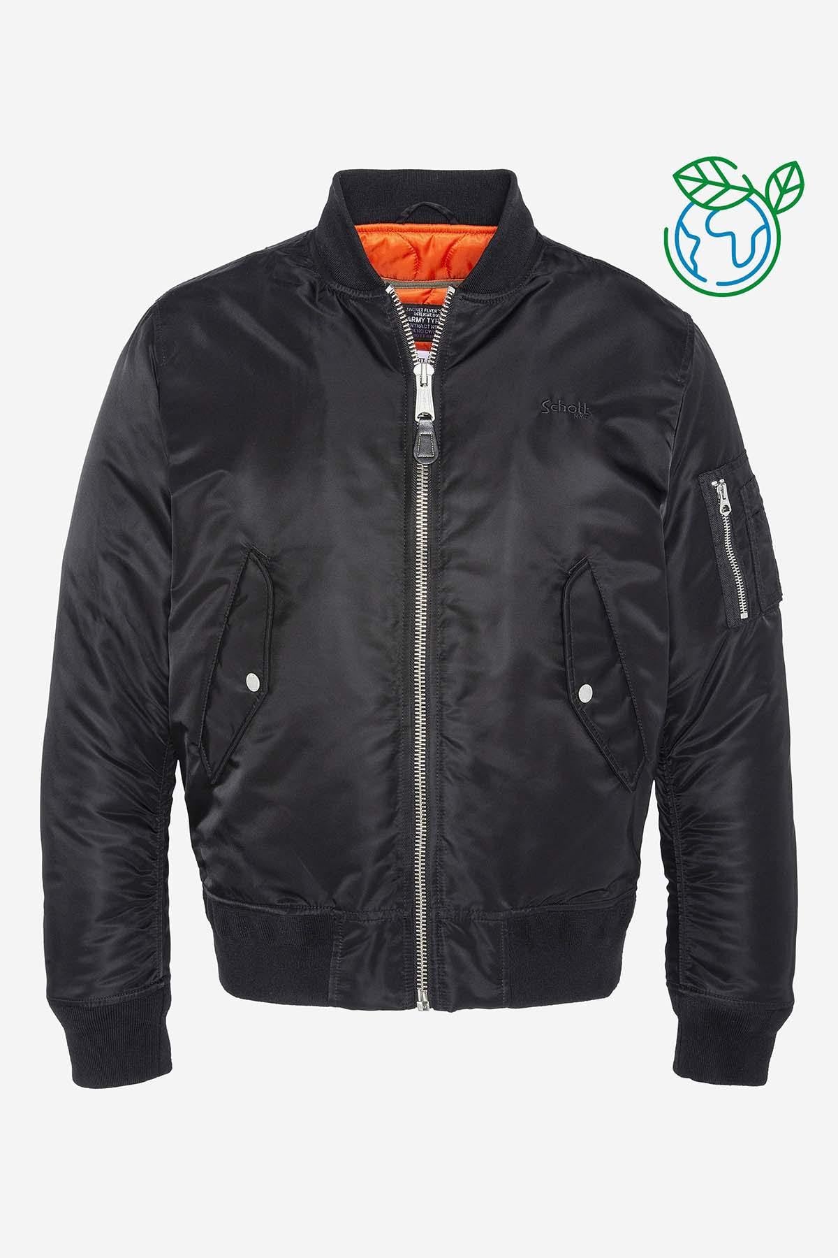 The MA20RS BLACK men's jacket from the Schott brand is made of black nylon. It is a jacket suitable for all seasons.