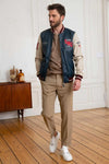 The COOLER KING STEVE MCQUEEN ROYAL BLUE men's jacket from the Classic Legend Motors brand is a teddy made of navy blue/beige sheepskin leather. It is a jacket suitable for all seasons. It has a regular or straight cut, suitable for all body types.