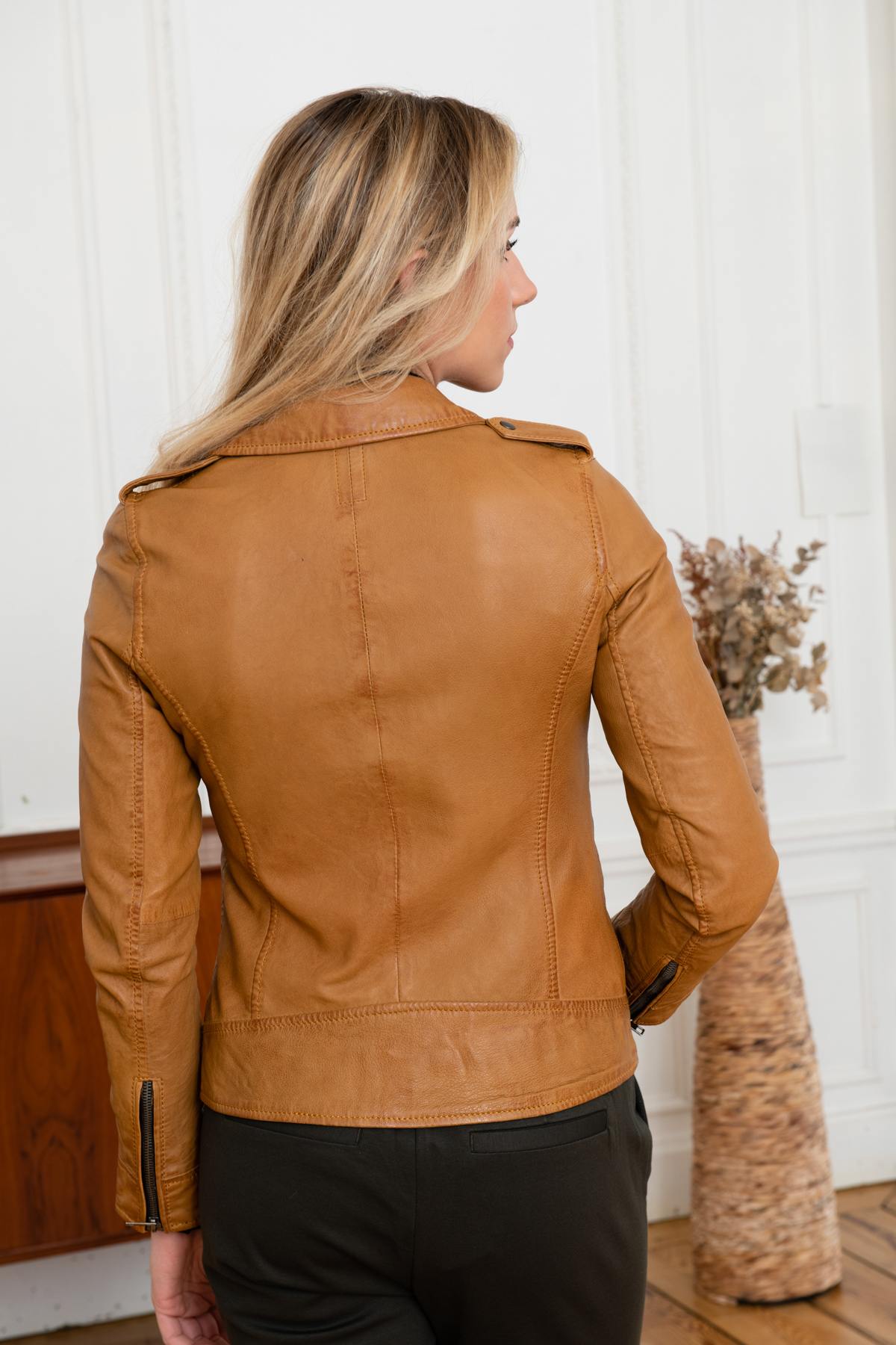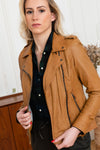 Magnificent LISA 6 BEIGE 513 women's jacket made in Italy. in sheepskin by the OAKWOOD brand. A perfecto offered in a regular cut that is comfortable and soft to wear.