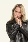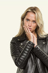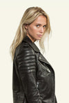 This perfecto with a quilted effect; on the sleeves, the waist and lower back will bring a hypster touch to your look. your look.