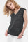 Made from scratch. à linen base in a straight cut, you will undoubtedly like it. This t-shirt has very short sleeves with cuffs and an embellished V-neck. of jewel-like silver beads. White and black stripes are flocked throughout. on the front, while the back is plain black and transparent.