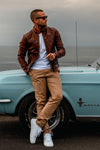Daytona, with its new Dustin Sheep Tiger Bison model, continues to stand out from the competition. It makes the difference with quality lambskin. superior, with with a cut close to the body, elegant and full of virility.