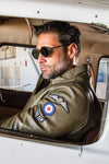 Discover the Trenchard Dark Khaki men's bomber jacket with shirt collar from Classic Legend Motors. This model, officially licensed by the Royal Air Force, embodies a classic style with a timeless touch, perfect for history and aviation enthusiasts.
