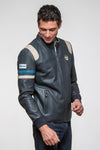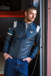 Ari Vatanen navy blue racing leather jacket - Image n°1
