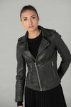 The MANGA DARK KHAKI 626 women's jacket from the Oakwood brand is a perfecto jacket made of khaki-colored sheepskin. It is a jacket suitable for all seasons. It has a slimfit cut, that is to say fitted and worn close to the body.