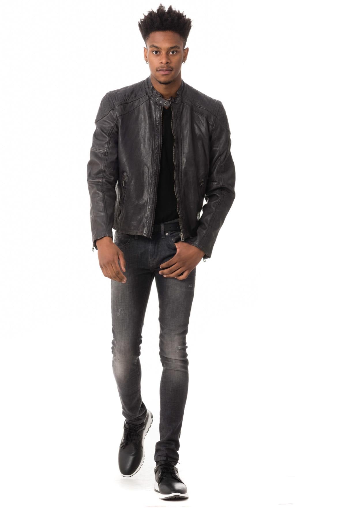 This lambskin leather jacket with cotton and polyester lining is perfect to accompany you every day.