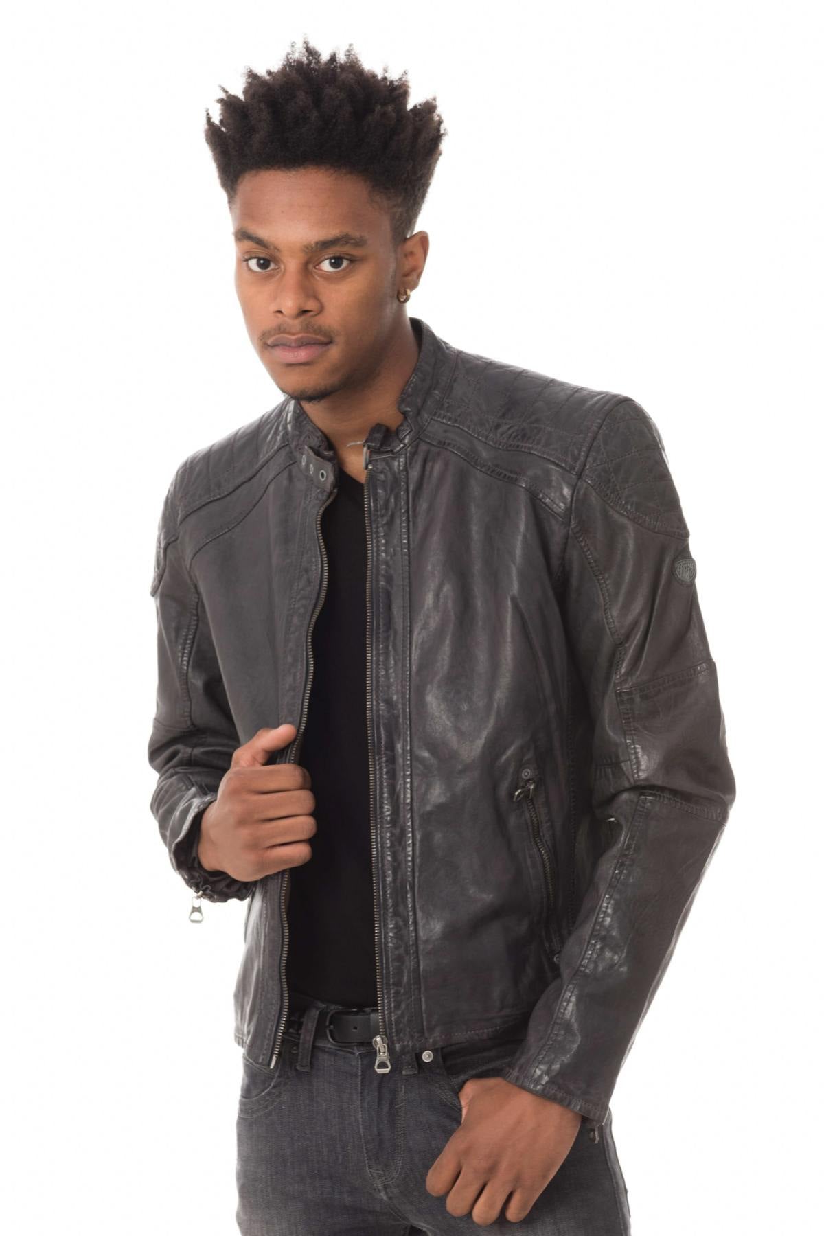 Gray lambskin leather jacket - Image n°1