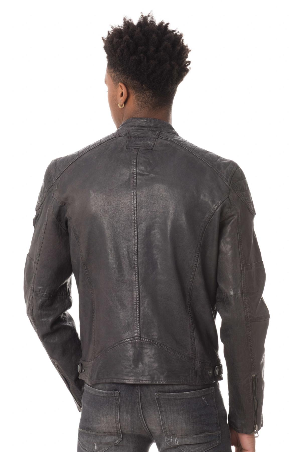 Gray lambskin leather jacket - Image n°5