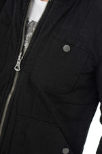 Quilted effect, 2 zipped side pockets and 2 chest pockets on both sides.