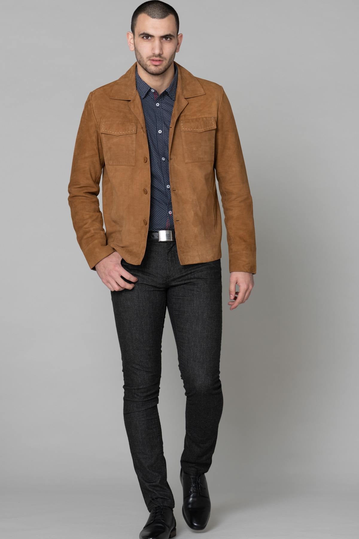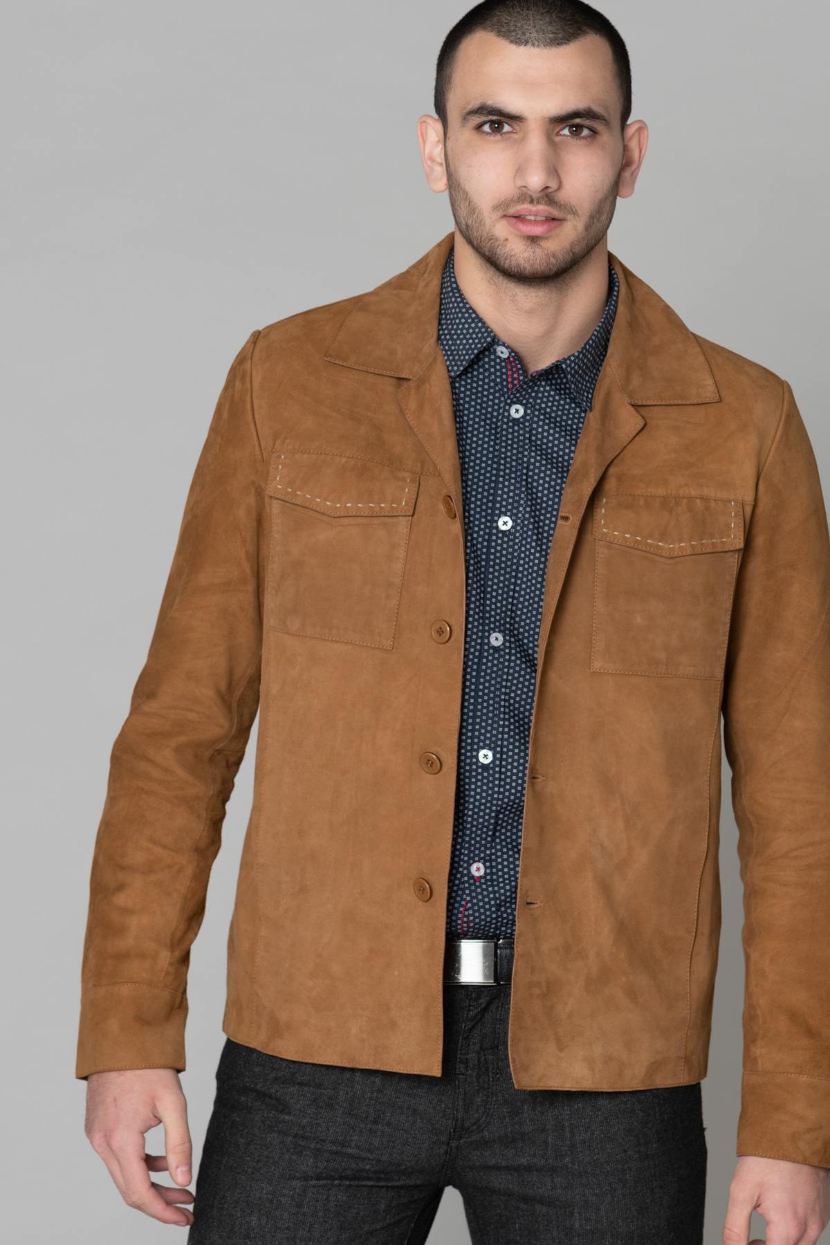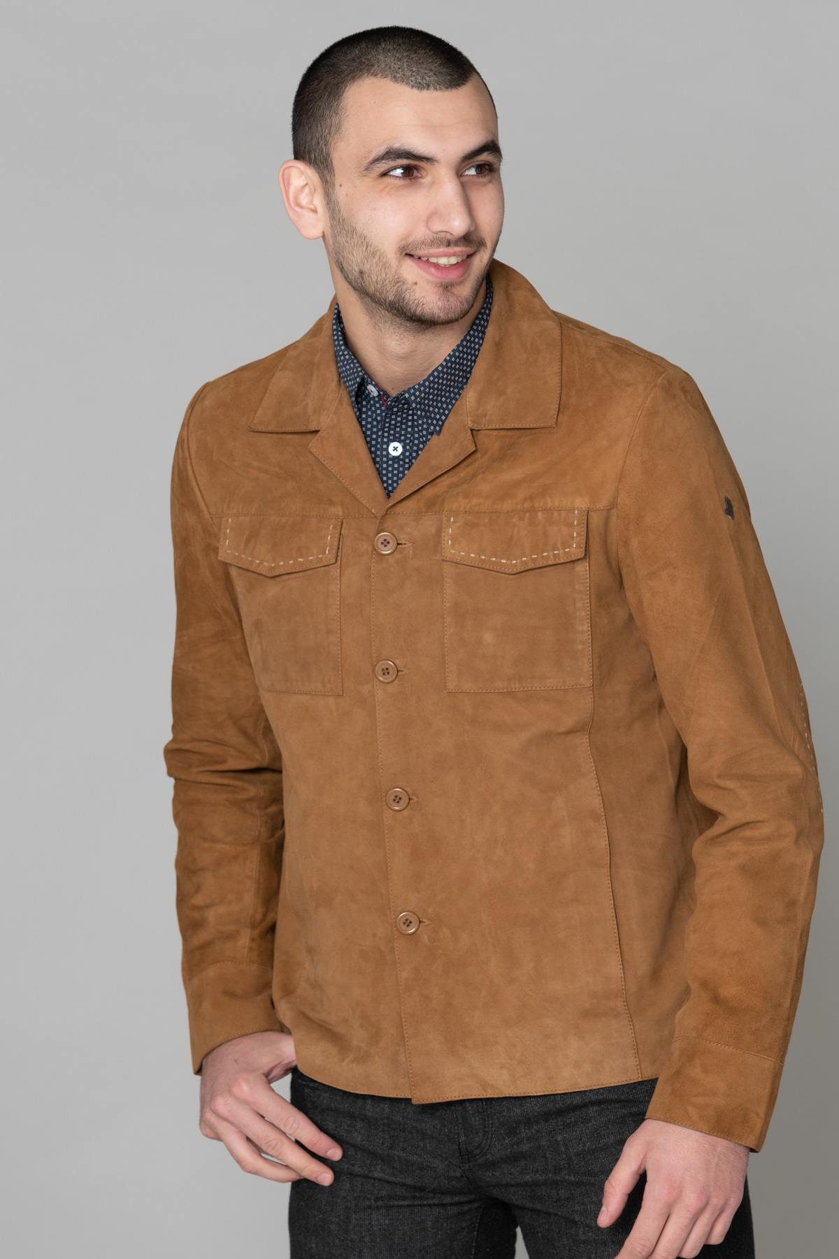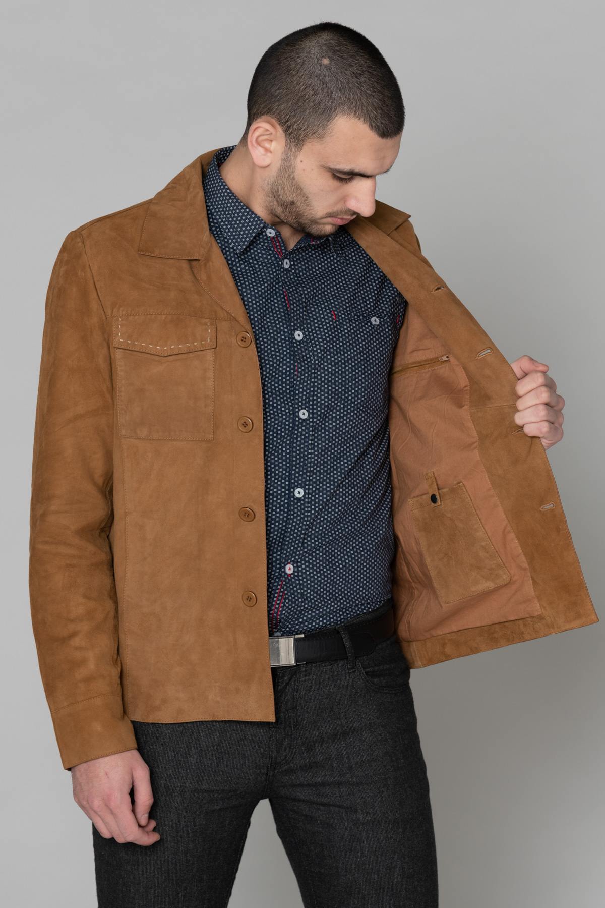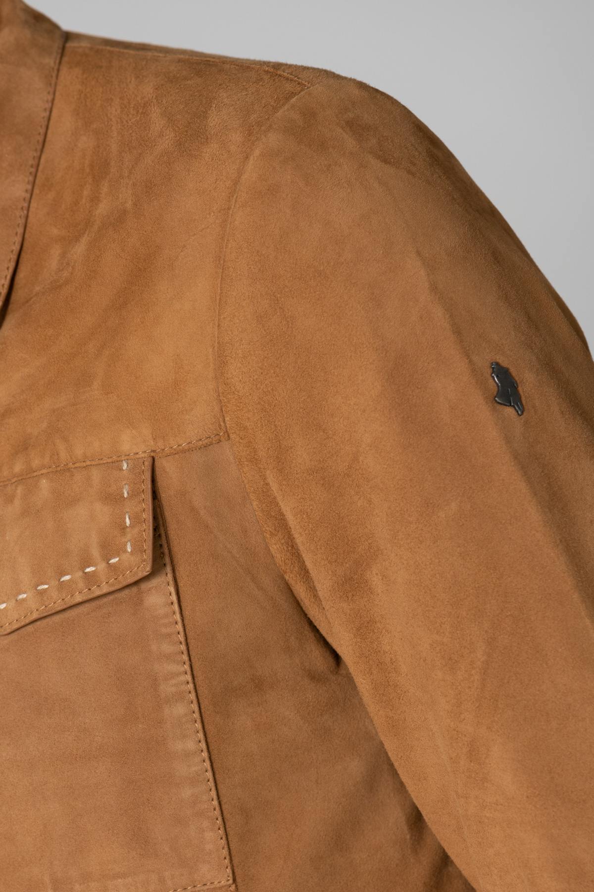The brandMCS presents the P003 208 jacket in suede-style sheepskin leather in brown.