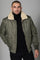 Khaki pilot jacket with beige fur-lined collar - Image n°1