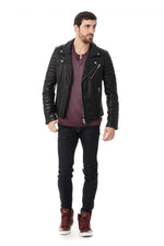 It is a close-fitting cut. The product will be fitted at the waist and the sleeves will be quite tight.<br><br> This type of jacket will be worn more easily open due to its fitted appearance.<br><br> The Slimfit cut is the most widespread among leather clothing, it is the fashionable cut!