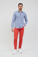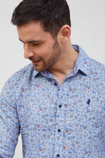 This shirt is simply configured with its shirt collar, its single button placket with buttons dark blue and its long sleeves. A pretty print floral all-over style tattoos the light blue color of this shirt for a magnificent result. The brand logo is embroidered. on the side left chest.