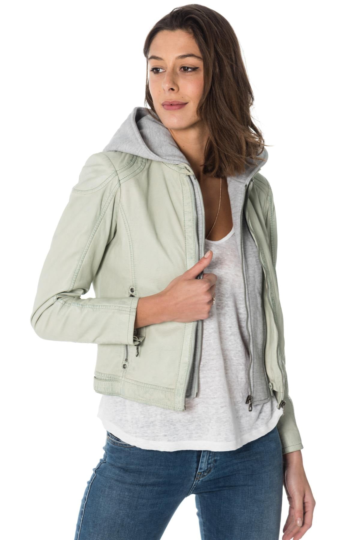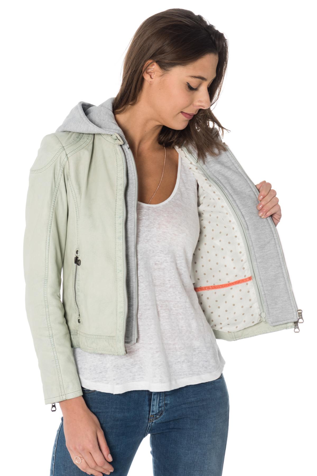 This lined lambskin jacket made of cotton and polyester has a pretty facing with a removable sweatshirt effect hood with a zipper.