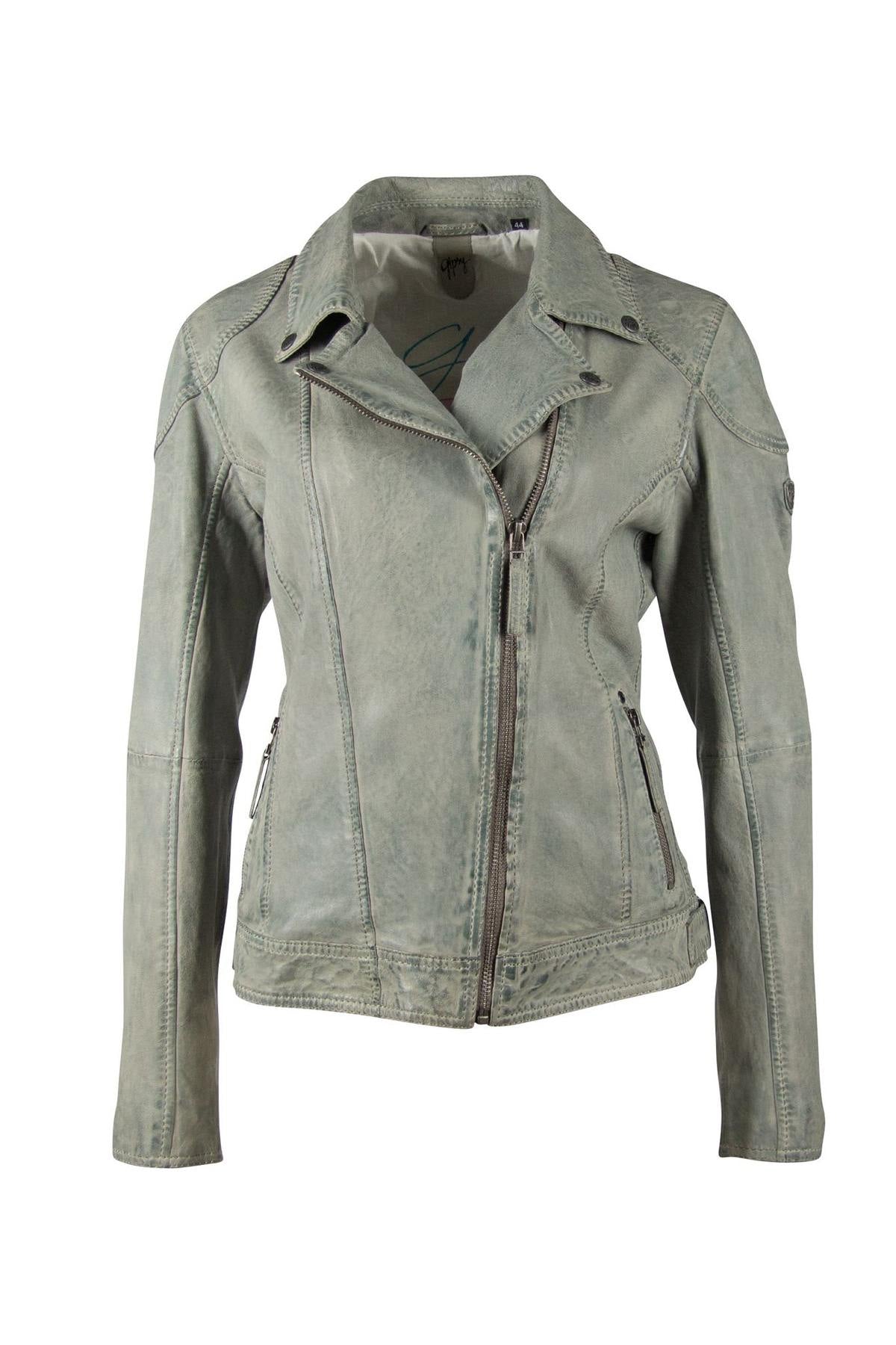 The GGSHAKEE CF LAMAXV LIGHT MINT women's jacket from the Gipsy brand is a perfecto jacket made of gray vegetable lambskin. It is a jacket suitable for all seasons. It has a comfort cut for greater ease.