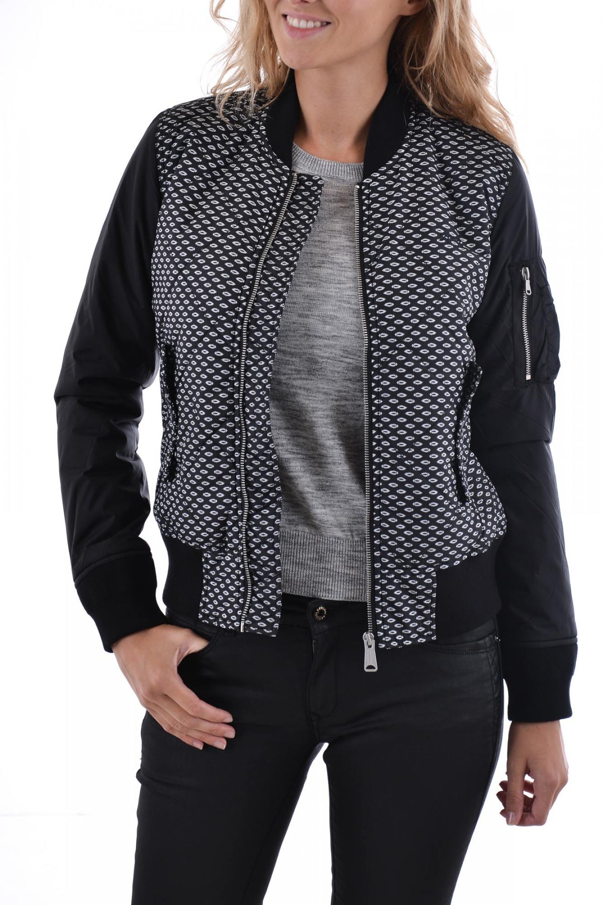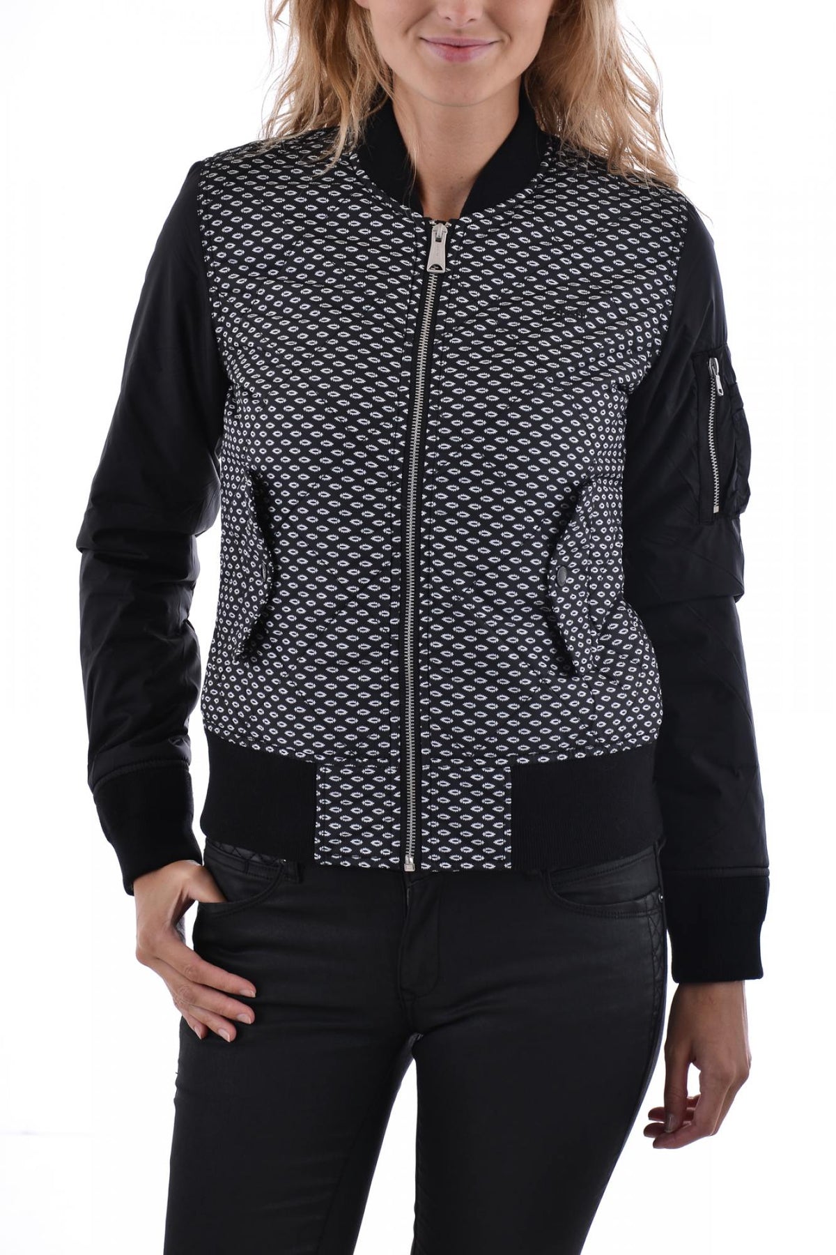 Women's Jacket Schott JKTBOMBER3W GRAPHIC/BLACK