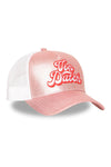 Pink and white mesh cap with pop-style logo - Image n°1
