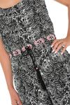 Black and pink embroidered waist with a very pretty braided rope with pompoms and pearls.