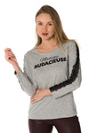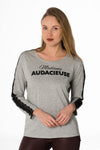 An inscription on the on the front indicating: "Madame AUDACIEUSE" in sequins.