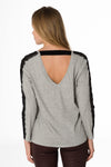 Edging lace on the long sleeves and shoulders also, finished with a fabric tie in the back at the collar to offer you a magnificent semi-backless look.