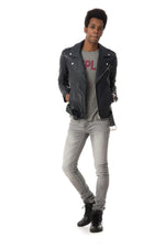 The perfecto has become a best-seller in our wardrobes, on a daily basis it brings a fashionable touch to your wardrobe. your outfits and you can pair it with a sweater, slim jeans and boots or with a t-shirt, jeans and sneakers.