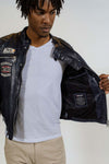Made in sheepskin leather high quality, this jacket is enhanced by a textile hood, removable using drawstrings, adding a casual and practical touch. It features a deep midnight blue color and a diamond quilted effect on the shoulders which accentuates its rugged look. Featuring a metal Redskins logo on the shoulder, it also offers four exterior zippered pockets and one interior nylon pocket. Finishes include zips at the cuffs for a personalized fit. The regular cut of this jacket makes it suitable for different body types.