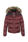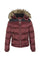 Burgundy hooded down jacket with black shoulders - Image n°1