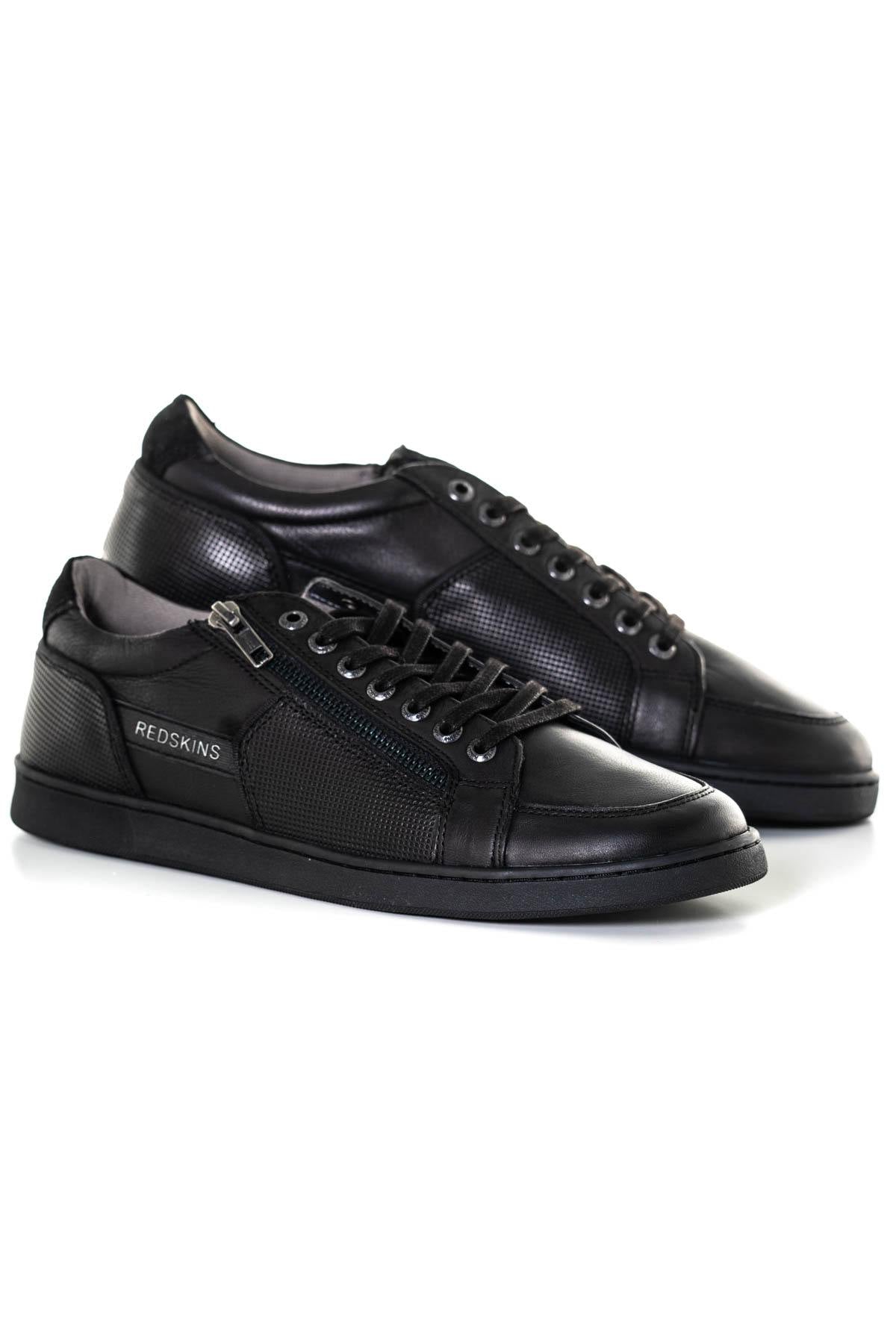 The DISTRAIT NOIR men's leather sneakers from the Redskins brand are made of black cowhide leather.