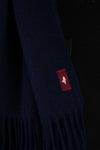 Available in one size, this navy blue scarf is long enough to wrap easily around your neck. Each of its two ends is frayed for a very classy style. The brand logo is flocked. discreetly on a red badge.