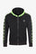 The model has a beautiful hood that extends the central zip as much as possible, thus allowing optimal protection. This hood is well integrated into the colorful atmosphere of the sweatshirt, which plays on green and black. We could also talk about the elegant drawstring with lock of this product. Two zips on the sides mark the side pockets which will ensure the comfort of your hands. The size is at; ribbed edges, just like the cuffs that end long sporty sleeves. The latter are decorated with contrasting logo bands. The label's signature is also found on the chest and back. inside on the back.
