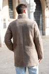 Elegant coat in aged sand-coloured shearling - Image n°1