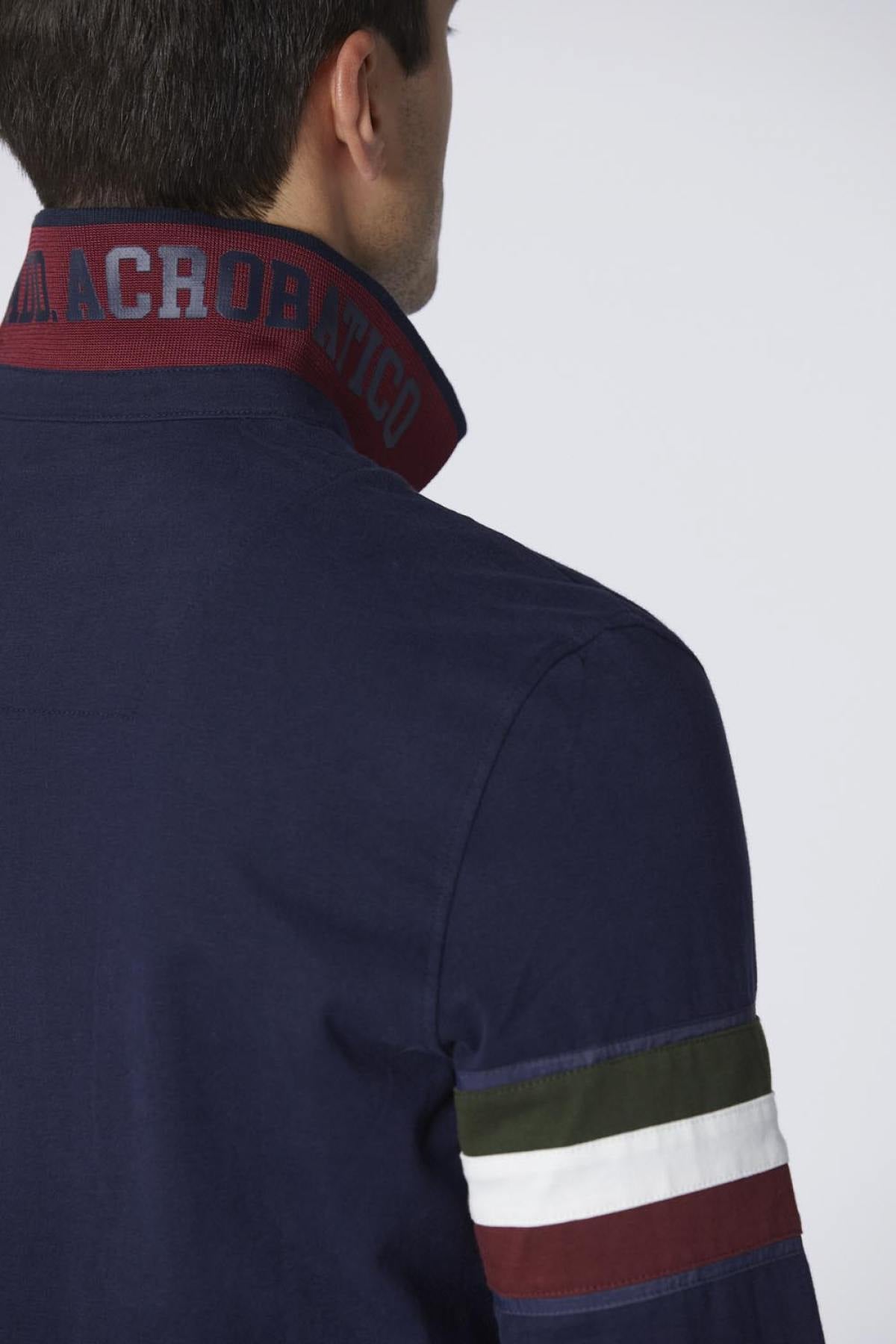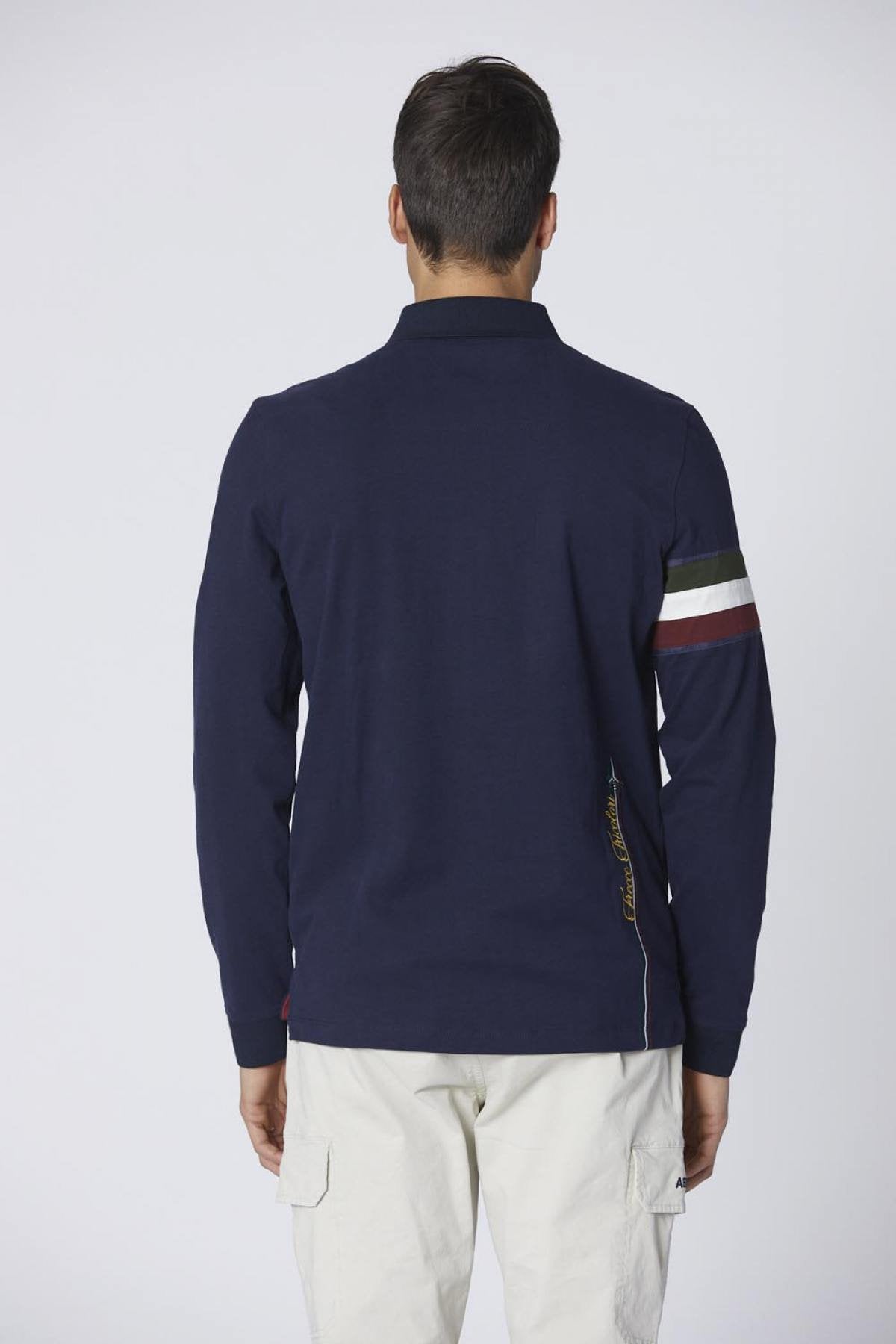 Dark blue jersey polo shirt with tricolor insert - Image n°4