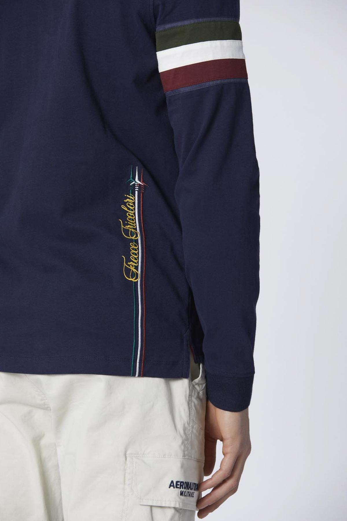 Dark blue jersey polo shirt with tricolor insert - Image n°5