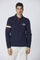 Dark blue jersey polo shirt with tricolor insert - Image n°1