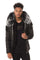 In nylon with lambskin inserts on the facing, shoulders, sleeves, back, pockets and hood.