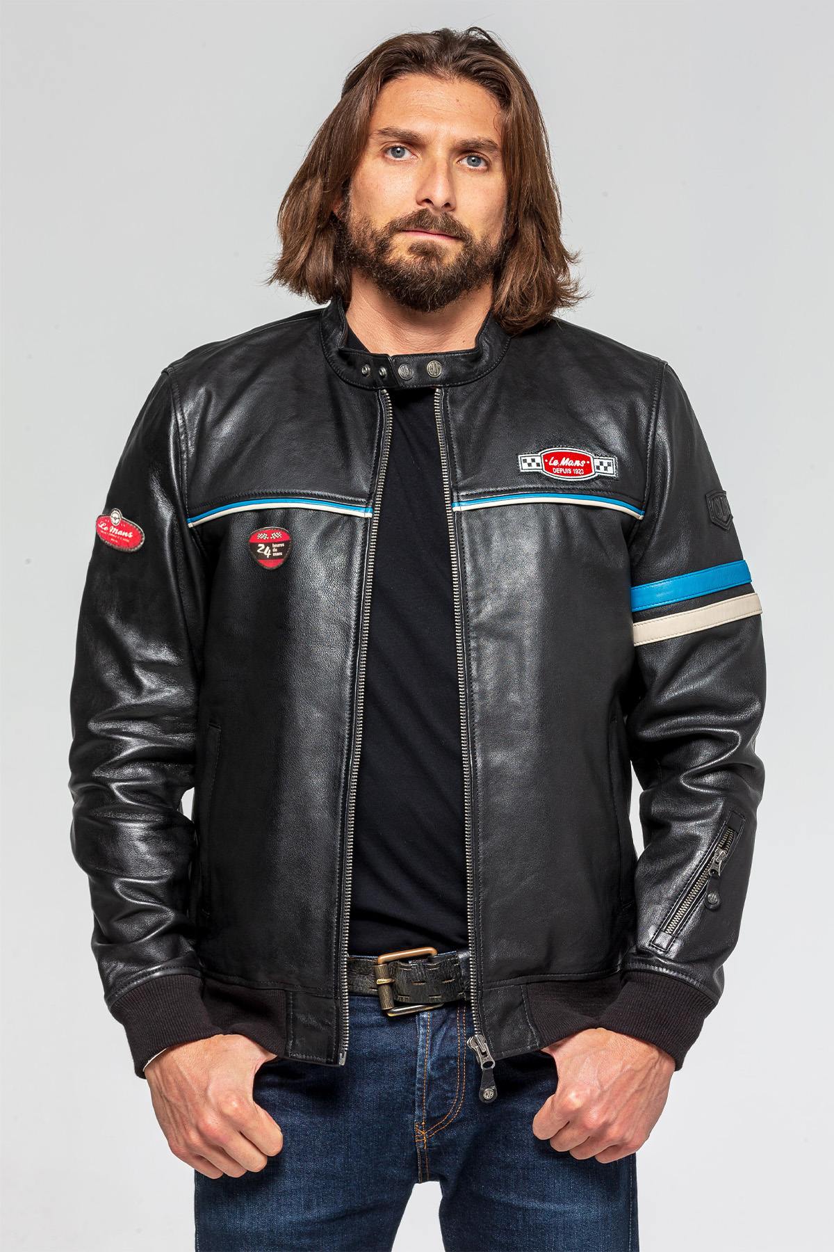 Le Mans brand jacket. This sheepskin is an official product, recognisable by its patches on the chest and sleeve.