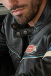 The ‘plus’ of this leather is the pocket on the left sleeve. This detail is atypical and refers to motor racing jackets.