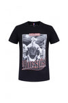 The JORDAN M500 BLACK/RED is a very beautiful black t-shirt highlighted by a black and white photo print representing a Thai boxer, all with an inscription in rhinestones which add a very nice touch of color.