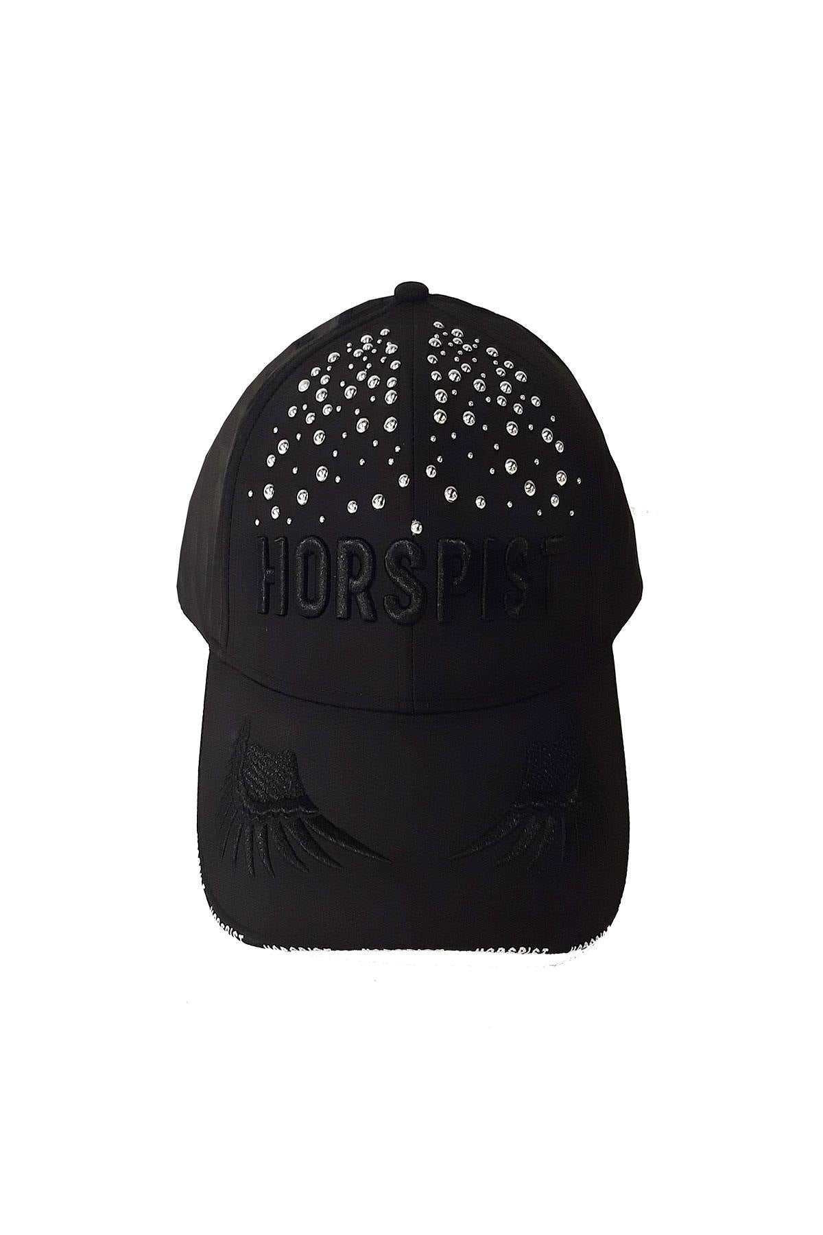 The symmetrically arranged rhinestones on the front of this cap give it a chic and luxurious style. The brand name is printed on the label. in 3D just below and matches perfectly with the frame. the pair of wings embroidered on the visor. To add a little touch of originality, the Horspist brand is flocked in white filigree on the edge of the visor.