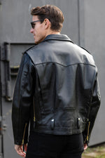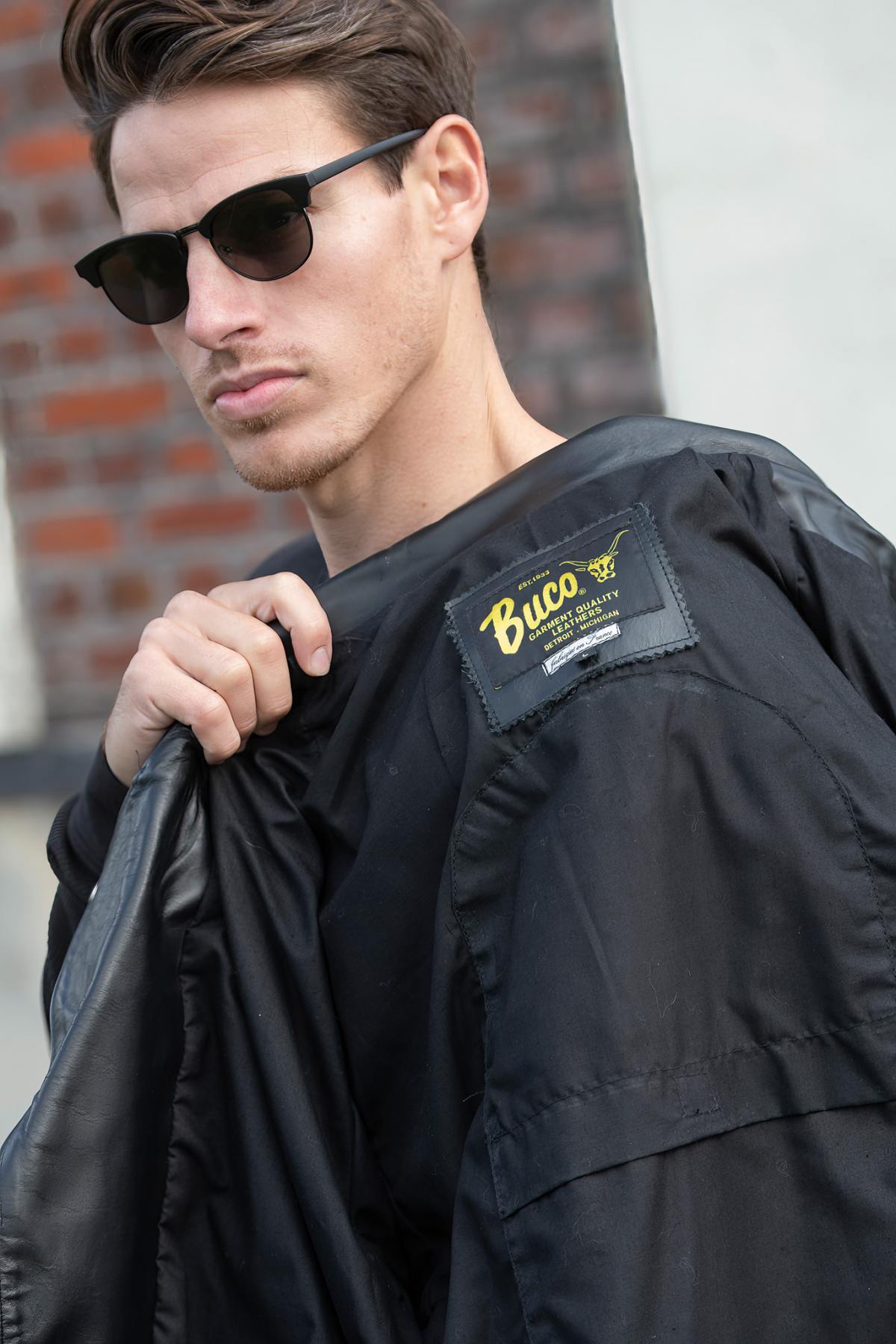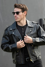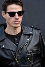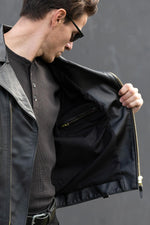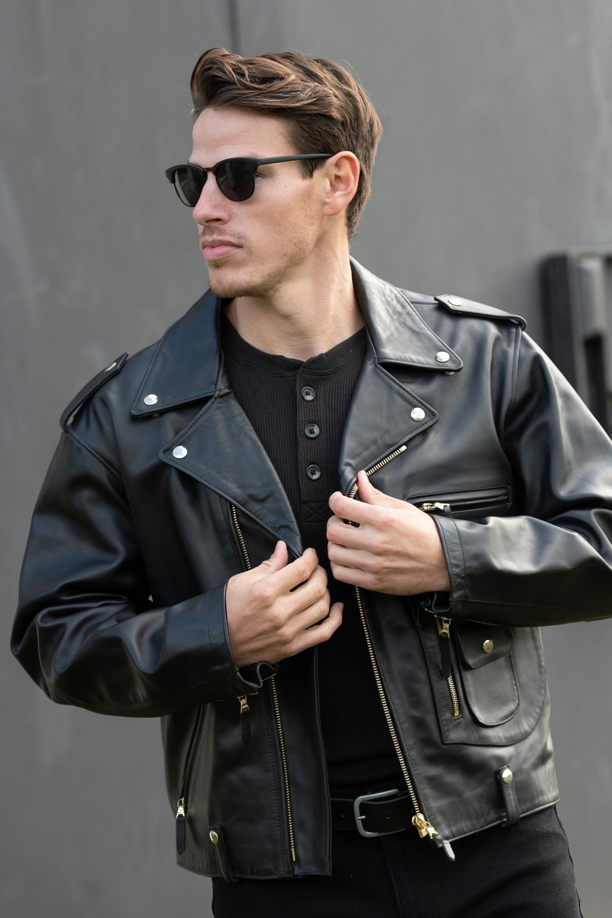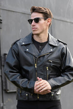 Discover the J200 Buffalo by Buco, a black buffalo leather jacket for men, Perfecto style, thanks to its asymmetrical collar. This timeless model combines elegance and robustness, ideal for all seasons.