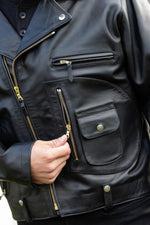 Biker Style Leather Jacket with D-Pocket - Image n°1